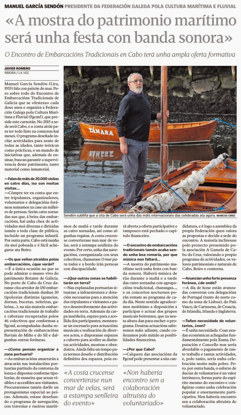 Entrevista al presidente de la Federación Galega pola Cultura Marítima e Fluvial en La Voz de Galicia
