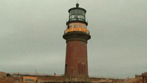 El famoso faro de Martha’s Vineyard corria peligro de caerse debido a la erosión del acantilado donde está situado. Los Americanos, que son como son, lo suspenden en una plataforma, construyen unos railes y se lo llevan uno cuantos metros mas adentro.