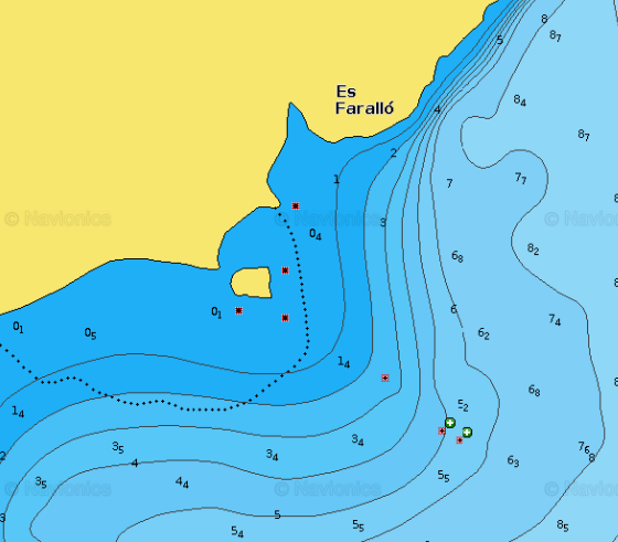 Ahora lo detallo. Y en éste detalle se ve el veril y zona sombreada en verde. otro dato importante no se puede navegar a menos de 50 metros de la costa y el veril está situado a escasos 50 metros de la costa. Por tanto creo que los datos y carta son correcto. espero haber ayudado ![]() P.D.: en navionic la zona de azul mas intenso, recoge por casualidad zonas de bajas profundidades como la zona verde de la carta oficial.