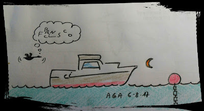 Efectivamente las dibufirmas al principio eran para el nombre de personas. Mi idea era regalarlas, y que cada uno aprendiera a dibujar la suya y cada vez personalizarla según su estado de ánimo, que es lo que hago yo con la mía. Si estás optimista puedes poner de fondo un arco iris, la via láctea, cosas que se eleven (un globo, una bici volando...), una isla desierta, una mariposa, etc. Si estás pesimista, un tornado, un nubarrón, una lluvia torrencial, algo que se hunde, un náufrago, una telaraña, una mosca, etc. Pero vosotros en general me pedís el nombre de vuestro barco y a mí me da igual.