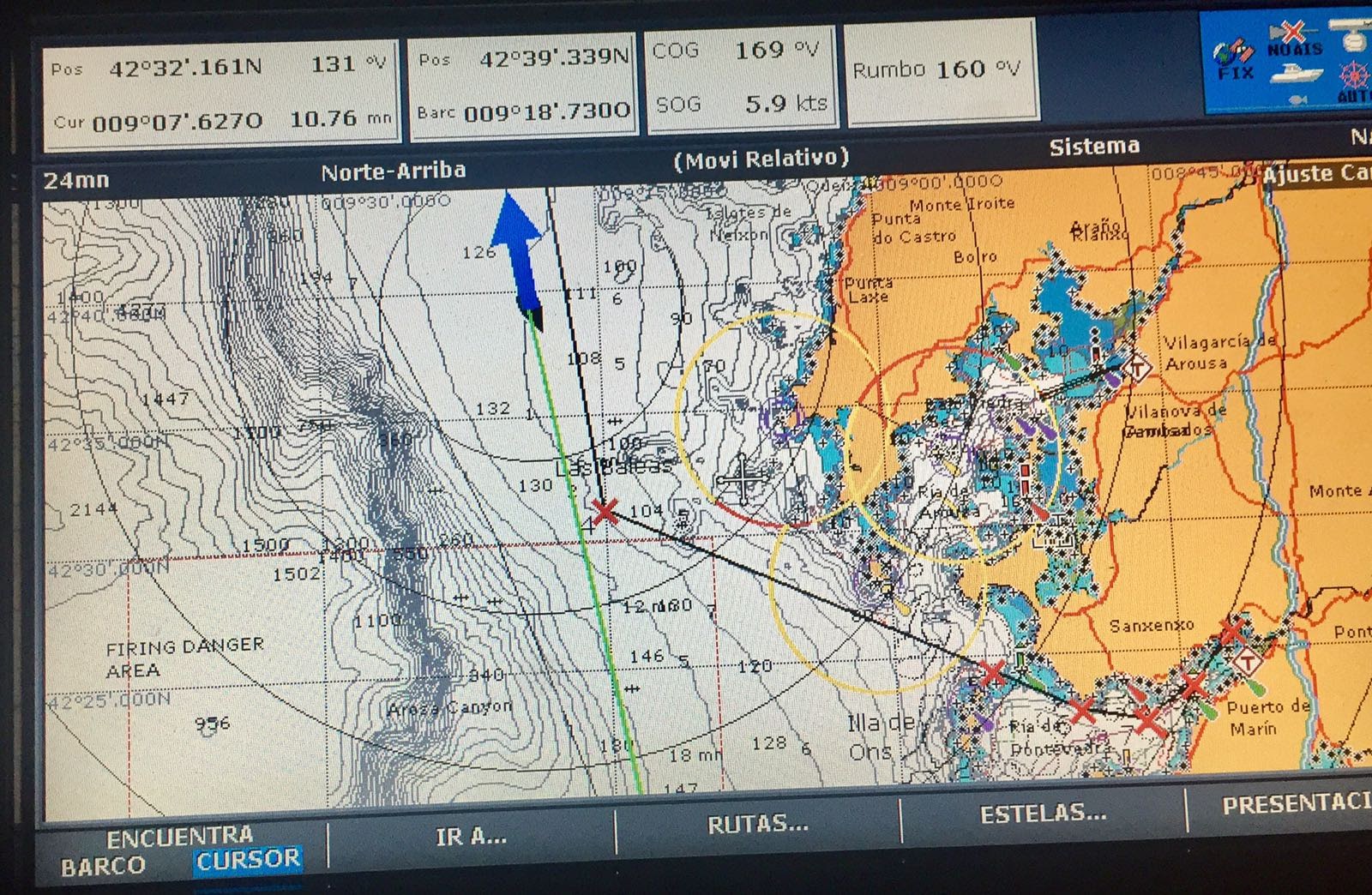 Lo que encontramos por la noche fue visibilidad de más de 10 millas y por la mañana, a la altura de Corrubedo, ya amanecido, se cerró bastante, hasta visibilidad de una milla o algo más...