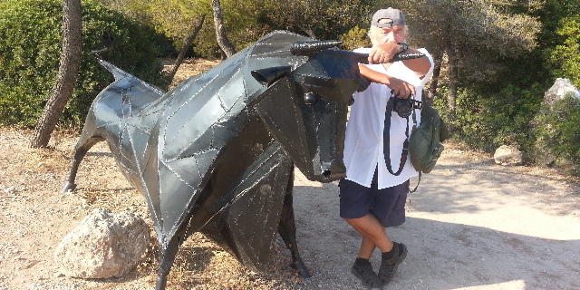 El recorrido se hace por la cresta de una lengua de tierra que separa el puerto de la playa y cuyo sendero ha sido decorado con una serie de esculturas de animales realizadas en hierro soldado. A mi la que mas me gustó fué ese homenaje al toro de Osborne.