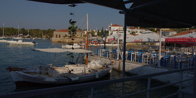 Prácticamente toda la ensenada está rodeada de "Tabernas" y "Wopotabernas" estas segundas dedicadas según dicen al pescado. Mi opinión de amante del pescado a lo que los griegos hacen con ellos es bastante crítica, pues desconocen otro tipo de cocción que no sea el de achicharramiento hasta el punto de carbonización.