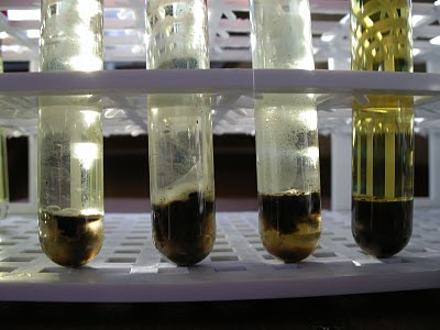 Los resultados han sido bastante decepcionantes. En primer lugar, no he conseguido que desaparezca el agua con ningún producto; tampoco he apreciado que desaparecieran los residuos bacterianos por medio de los bactericidas. Sin embargo, sí que he notado diferencias significativas con uno de los productos, en lo referente a que el gasoil sobrenadante del agua y del gel bacteriano se ha mantenido siempre transparente; el agua siempre ha estado limpia; la frontera entre agua y gasoil ha sido nítida y el “barro” de las bacterias se ha homogeneizado (como si se hubiera “micro-triturado”).