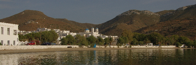 Un poco mas al Norte hay un puerto pesquero Ay. Aigialis que se ha transformado en un enclave turístico de cierto nivel. Una buena playa , una calle con algunas tabernas y unas plataformas formando un mirador hacia el puerto y que invitan a sentarse a ver pasar las horas.