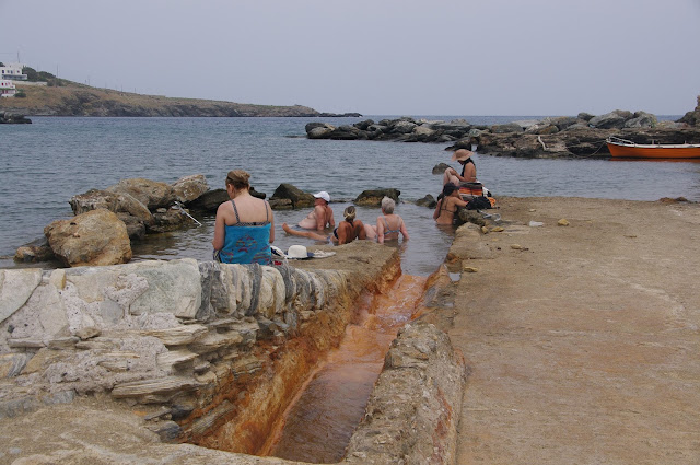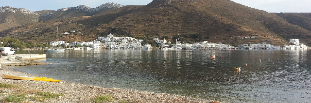Un poco mas al Norte hay un puerto pesquero Ay. Aigialis que se ha transformado en un enclave turístico de cierto nivel. Una buena playa , una calle con algunas tabernas y unas plataformas formando un mirador hacia el puerto y que invitan a sentarse a ver pasar las horas.