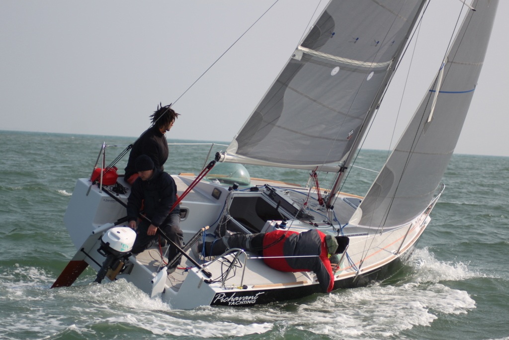 Ckaro está que en ceñida viene muy bien Pues a bajas velocidades o ángulos muy cerradas se sostiene muy bien, incluso navegando sólo con la mayor y en ceñida, pues prácticamente no abate nada.