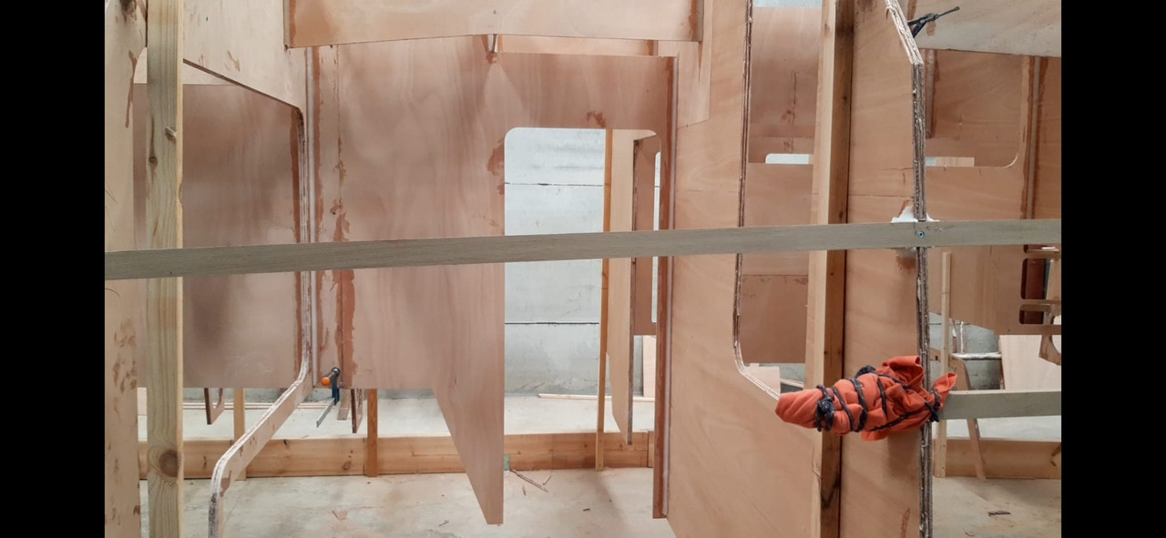 El tablero es de 6,5 mm . El casco lo formarán dos capas de tablero, más un forro de fibra. ![]() ![]() |