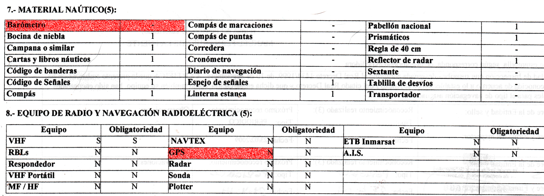El que lleva la gestión de la LEB me dice que en la instalación VHF DSC no consta el GPS en la base de datos. Yo le doy la razón ya que observé que en el “certificado de navegabilidad” no estaba marcado el Gps en el inventario.