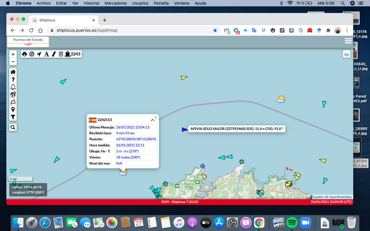 Pues amanece con Dalin a la altura de Navia, todavía pegado a tierra, 6 trasluchadas desde que se acercó a la zona de separación de tráfico de Finisterre, a unos 16 nudos y una media de poco más de 12 en las últimas 4 horas.