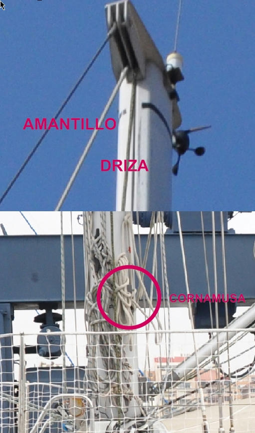 Supongo que lo llevava puesta el barco ¿cómo está montado?¿Baja por dentro del palo? ¿dónde la haces firme? ¿qué cabo pones 8/10mm?