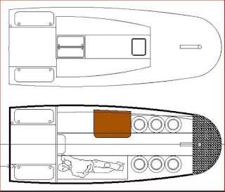 En otras entradas os hablé del francés Yann Quenet, que con su velero de 4 metros bautizado "Baluchon" está dando la vuelta al mundo. En solitario, claro. Pues actualmente Yann se encuentra en mitad de su aventura, en una escala prolongada en Nueva Caledonia. Mal rollo, porque es en las escalas donde el dinero se va a dar una vuelta a tierra, y a él precisamente no le sobra. Con tanto tiempo muerto, entre otras cosas está pensando en el próximo velero que se construirá cuando regrese a Francia. Será su velero "grande" y tendrá ¡6 metros de eslora!, un poco menos que el Corto Maltés. Os resumo la entrevista con Voiles et Voiliers: Voiles et Voiliers : Yann, ¿puedes hablarnos de tu proyecto de barco "grande"?. Yann Quenet : sí, es un poco la locura de la grandeza, es verdad. Yo diseño barcos sin parar, es mi pasión. Se trata de mi último proyecto, el que sucederá al Baluchon. Estará destinado a navegaciones por latitudes más extremas. Me le imagino por el Atlántico Norte y luego por la Patagonia, me apetecería mucho. Y también le imagino por los océanos australes, por los cuarenta rugientes. Voiles et Voiliers : ¿cuales son los principios generales de su construcción?. Yann Quenet : es como un Baluchon en versión crucero. Por ejemplo, ahora no tengo anexo y debo alcanzar la costa a nado. He pensado integrar un anexo en el nuevo barco, separado en dos mitades. La proa estará boca abajo en la proa, y la popa estará moldeada con la forma de la bañera del grande. Como el velero tendrá dos palos, la botavara del de mesana servirá de pescante para el anexo. Nota: en la siguiente foto podéis ver, en azul, las dos mitades a bordo del velero "grande" y luego ensambladas, y que podrá manejarse con remos o con una pequeña vela. Esta última sería la vela de mesana del velero "grande", que pasaría, entera, a ser la vela del anexo. Voiles et Voiliers : ¿conservarás la forma de la carena "en scow"? (se refiere a la proa redonda en vez de puntiaguda). Yann Quenet : sí, es perfecta para veleros pequeños, e incluso para los grandes. Pero especialmente para los pequeños por su gran volumen, no como ahora en el Baluchon que es tan minimalista que debo llevar todo en contenedores: el agua, la comida..., todo. Nota: en la siguiente foto, el esquema de los planos, con 6 metros de eslora y no más de 1,8 de manga, y la proa "en scow". Voiles et Voiliers : y en cuanto a las velas, en los dibujos se ve un espí, ¿no?. Yann Quenet : sí, uno asimétrico. No es seguro que lo instale, dependerá del presupuesto. También el Baluchon lo había previsto y al final tuve que renunciar por falta de dinero. Hasta aquí la entrevista. Este tío desde luego no entrará en el medallero de una Vendée Globe, pero tiene infinitamente más mérito que esos marinos superesponsorizados que llevan a bordo la electrónica de un Boeing 747. Con cuidado, navegantes.