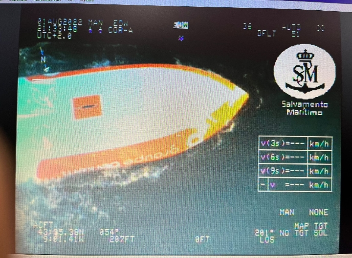 Espectacular, espectacular la Rapidez de Salvamento Marítimo si comparamos la Hora de esta fotografía con la última posición y Velocidad (8-9 nudos) enviada por este Clase 40 que zarpando de Oporto ceñía en una ceñida abierta contra un NE Fuerza 6