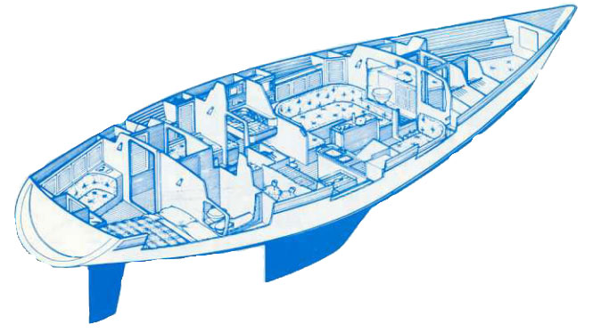 Esa distribución es muy habitable, sobre todo para una pareja y algún visitante ocasional, pero para barcos de no mucha eslora, casi prefiero que no haya mamparos en proa...un salón con cama bretona a proa, que puedes también utilizar para visitantes ocasionales y que no recorta tanto los espacios interiores.