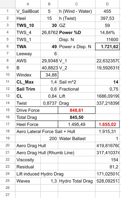 ![]() 7 Tanques de Lastre de Agua de Mar Salada para ceñida con Viento fresquito, fresco y Frescachón (en la hoja de cálculo soplan 30 nudos de viento atmosférico/meteorológico @ 10 metros de Altura, el viento Efectivo Efectivamente en Efecto que llega a las Velas a la Altura su centro AeroDinámico es 29,9) Tanques de Lastre es sencillo como mecanismo de Búcaro si está bien pensado Dos Bombas eletricas Dos, de esas que en Castilla llaman eléctricas, y unos tapones para soltar el agua en el suelo de la Bañera nunca mejor dicho El velero que era de 400 Newtons de Fuerza de avance se transforma en una máquina de > 800 Newtons Un maquinón deportivo al que se le pude pisar bien y un pedazo de asiento com pedazo de respaldar y el culo encima de un cojín de Gel Eficiente, Cómodo, Seguro, Divertido |