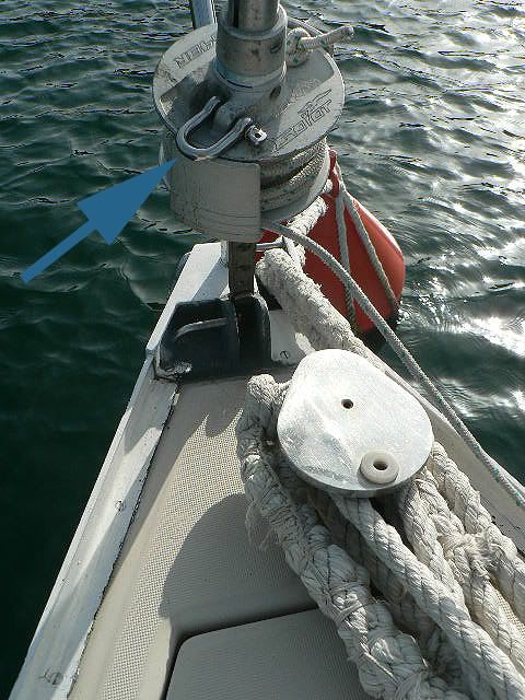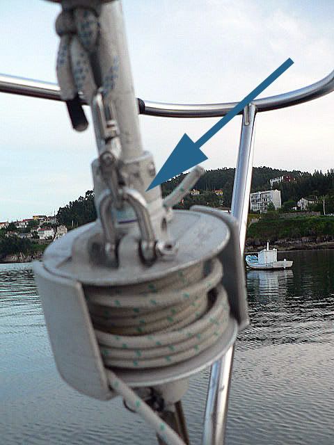 De todos modos hoy he estado visitando el barco y aproveche para sacar unas fotos y colocarlas aquí a ver que os parece...Bueno al sacarlas me dí cuenta de que la solución la tenía delante de mis narices. Me explico, tengo un viejo enrollador Goiot puesto y puedo aprovechar el grillete al que se le une el génova. Como stay volante la driza del spi, sería cuestión de encargar un tormentin y a navegar . ¿Qué os parece?.