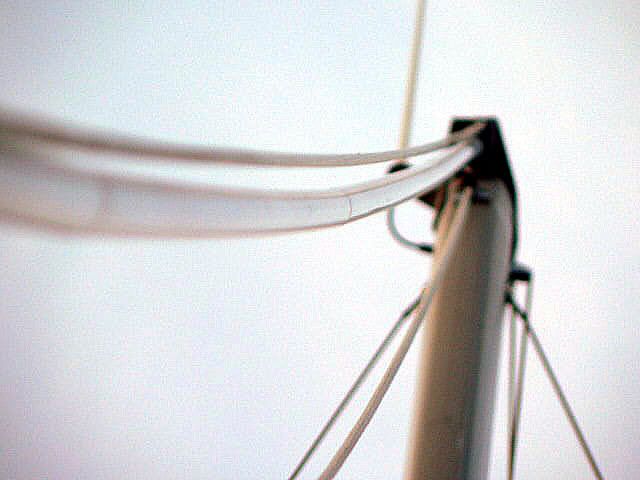 - El sok-jib embergada como va sobre el genova enrollado no creo que sea vela para navegar, al largo sin mayor puede servir, pero es lo que es, un tormentin para temporal.
