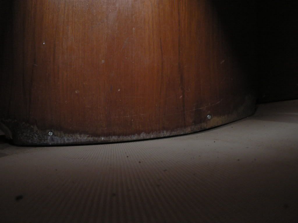 Por cierto para acceder a los tornillos de la orza tengo que desatornillar un montón de tornillos que sujetan al piso la "tapa"(que tiene la mesa abatible) de la caja de la orza. A su alrededor hay 3 centimetros de perimetro libre en donde se aprecia el "fondo" del barco que es bastante plano y es donde se quedan las humedades y filtraciones varias.