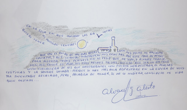 Las dos primeras poesías tratan sobre la noche. Siempre me ha parecido que la noche en la mar es diferente que en tierra. Cuando estoy solo al timón me entran ganas de cantar o recitar. Invariablemente tengo que desafinar un rato con alguna habanera o recitar La Canción del Pirata de Espronceda. Si vamos a vela canto en voz baja para que el resto de la tripulación no se crea que me he vuelto loco, pero si vamos a motor tengo que descansar de vez en cuando para que resista mi garganta. Ahora gracias a Manuel Maestro voy a ampliar mi repertorio.