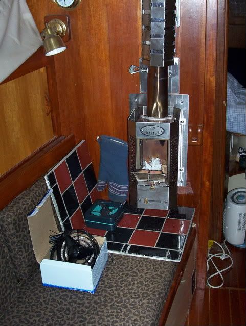 Hace tiempo que le estaba dando vueltas (http://foro.latabernadelpuerto.com/s...apitan+Sardina) y finalmente he instalado una estufita de lenya en la barca. Despues de investigar los diferentes modelos en el mercado me decidi por el modelo de SIG Marine / Dickinson. A diferencia de otras estufas de lenya esta echa en chapa de acero inoxidable. Tiene una pantalla integral para proteger al personal contra quemaduras y un cajoncito para sacar las cenizas sin levantar mucho polvo. Ademas tiene una balsoita que se puede subir o bajar para cerrar la camarade combustion y controlar el tiro o poder ver las llamas (como una “llar de foc”). Este modelo es muy compacto y se installa en un mamparo. Por otro lado la capacidad calorifica de esta calefaccion hecha de chapa de inox es menor que otros modelos mas tradicionales de acero forjado. Para el occasional fin de semana con temperaturas moderadas ya me vale.