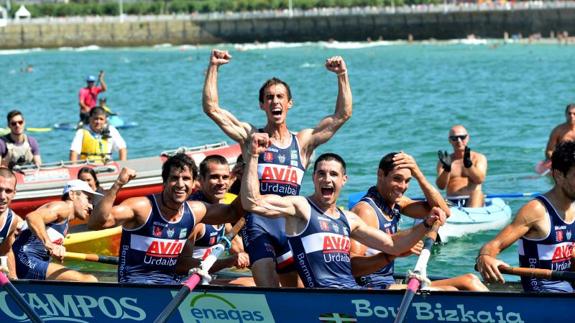 A mí si que me habeis tocado la fibra, llevo un año bogando (no lo había hecho nunca) y tengo 46. Remo en veteranos de Sestao, debemos ser la peor tripulación del cantábrico, pero nos lo pasamos de put.. madre. Somos cinco clubs de veteranos los que componemos la liga y cada club organiza una regata, después de la cual siempre hay una jamada. Por cierto, el sábado remamos en Armintza, aunque por motivos laborales no me puedo quedar a la chufla. Para el que quiera aplaudir somos los de la trainera negra y un servidor va de segundo de proa en estribor (el que va desacompasado con el resto).