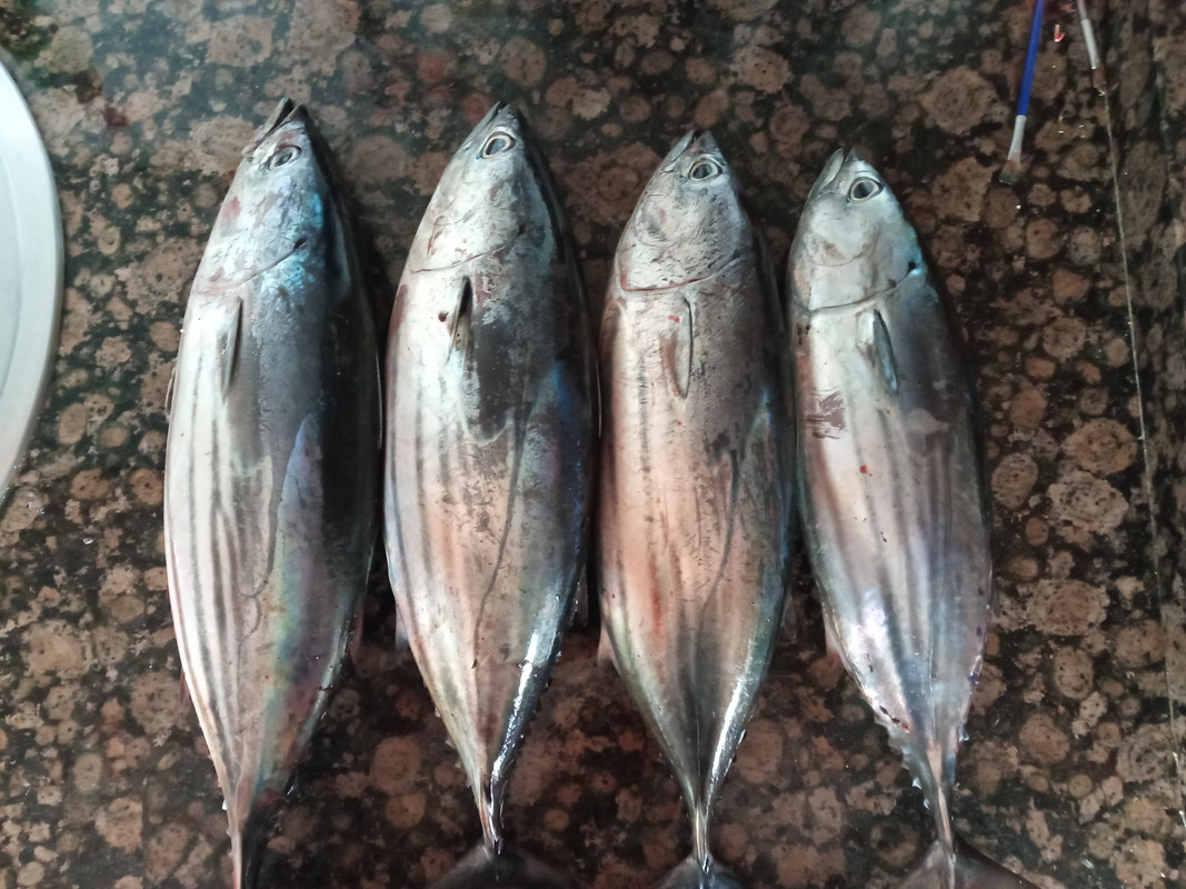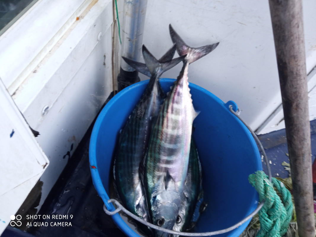 Esta mañana he salido a cacear un rato y cerca de la isla en 1 hora he llenado el balde de sierras, pero son pequeñas de 1/2 Kg. Con 10 llené el balde.