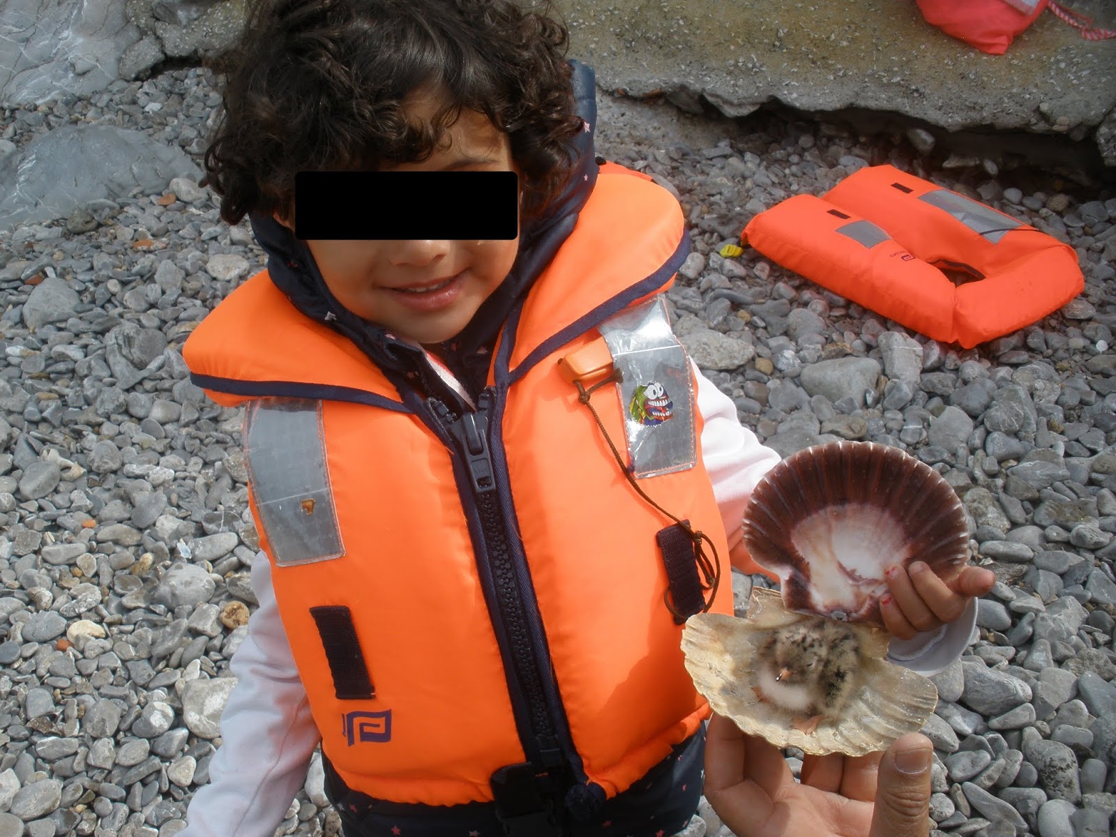 Hola navegantes. Ayer fue nuestra segunda navegación Carpe Diem de este verano. Después de la ciclogénesis que afectó a Cantabria el viernes, el sábado amaneció soleado y con poco viento y nos las prometíamos tan felices. Pero el viento fue arreciando a lo largo del día, y nada más salir a navegar teníamos ya un Nordeste de fuerza 5 que nos hizo abandonar nuestra idea original de salir de la bahía para desembarcar en la Isla de Mouro. La navegación iba a ser muy dura y teníamos a bordo algunos grumetillos de 4 a 6 años. Además la marea estaba entrando en la bahía y empujaba en la misma dirección del viento. Tanto es así que los primeros bordos los dimos a favor del viento y la marea (hacia el Oeste) y luego algunos de los barcos pequeños, con las velas reducidas como íbamos, no éramos capaces de remontarlos y tuvimos que ayudarnos con el motor. A pesar de ello los grumetillos aprendieron algunas maniobras de velas y a llevar el timón: Decidimos entonces cambiar de isla y desembarcar en la de Los Ratones, que está dentro de la bahía. Oficialmente se llama "Isla de La Torre", pero es más conocida por el nombre popular de Isla de los Ratones, porque antes de hacerse el edificio de la escuela de vela estaba llena de ratas. Es un islote rocoso con muy escasa vegetación baja en su vertiente Norte. Como la marea estaba alta pudimos desembarcar en la rampa de varada y acceder a la terraza de la escuela, que tiene una pequeña pista deportiva para que jueguen los niños los días que no pueden navegar. Nada más desembarcar vimos algunas parejas de gaviotas patiamarillas (las grandes) en actitud de defender sus nidos: se ponen a graznar para asustarte y te hacen vuelos rasantes sobre la cabeza, en algunos de los cuales te pueden cagar encima. Pero precisamente esa actitud las delata, y te hace saber dónde está el nido. Y así fue, pronto encontramos uno con un pollito ya nacido y otro huevo en incubación, que nos permitió estudiarlos. La isla tiene una playuca de arena de unos veinte metros de largo, pero tras algunos temporales del invierno, como ha ocurrido este año, la arena puede desaparecer y queda un playazo de piedras. La parte buena es que entre las piedras hay muchas conchas, caracolas y orejas de mar, sobre todo ahora al principio del verano que todavía no ha ido mucha gente. Dedicamos una parte de la tarde a recoger conchas. En la zona de vegetación suelen anidar los charranes (únicas colonias en el Cantábrico: 33 parejas contabilizadas). Los charranes son más pequeños que las gaviotas patiamarillas, tienen forma de golondrina y son más agresivos, tal vez por estar en inferioridad de condiciones con sus depredadoras las patiamarillas, que en cuanto se descuidan se comen sus huevos y hasta sus crías. Ponen los huevos de tres en tres como las patiamarillas, y del mismo color pardo moteado, pero son pequeñitos como los de las palomas. Tuvimos la suerte de encontrar un nido con dos polluelos y un huevo aún sin eclosionar. En 17 años que llevamos de Carpe Diem es el primero que encontramos estos polluelos. Una de las conchas de peregrino que encontramos parecía hecha a la medida para ser su casita. A la hora de volver la zodiac que nos habían desembarcado se retrasó y ya nos veíamos pasando la noche en el islote. De cena sólo íbamos a tener dos huevos (uno grande y uno pequeño) y 3 pollos (uno grande y dos pequeños), lo que para 15 personas hambrientas parecía bien poco (es broma). Finalmente nos recogieron y como ya había amainado el viento volvimos a puerto sin problemas, dando algunos bordos para estirar la tarde. Al volver a puerto practicamos las maniobras de amarre, y nos dio tiempo a pescar algunos animalitos y enseñarles a manejarlos. Finalmente fue una tarde perfecta pese a las dificultades de la salida. ¡Con cuidado, navegantes!.