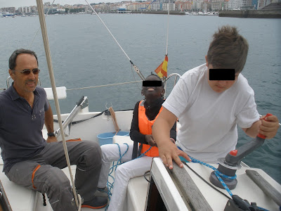 Ayer fue nuestra décima navegación este verano con los grumetillos y la dedicamos a enseñarles a pescar. Este día les embarcamos en una motora con un pescador que sepa pescar, no como los de los veleros que hacemos como que pescamos, para que se diviertan y aprendan algo de verdad, estando garantizadas las capturas. Embarcaron en el "Cole", que ayer sí que parecía de verdad un cole, aunque para aprender otras cosas.