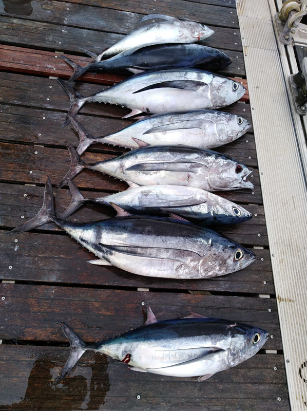 Otros años éramos nosotros los que íbamos hasta Billano y hasta el Abra a pescar, este año anda escaso el pescao por allí y aquí abunda y se arrima bastante a la costa. Es lo que te puedo decir. Los de esta mañana cogidos entre el 36 y 37 con magister alalunga, maese Txelfi, hemos vuelto a puerto a media mañana; ![]()