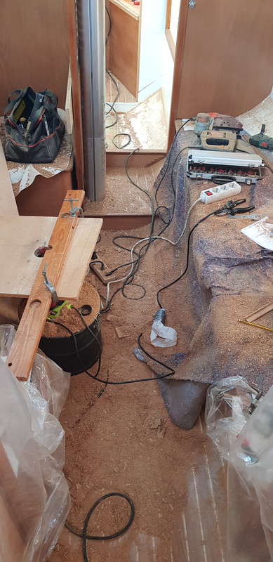 Ya conocéis mi Modus operandis ![]() Desmontar, limpiar, lijar, pintar y reconstruir y justo eso hice. Como comenté antes, no tengo fotos de todo el proceso pero básicamente lijado de todo y pintado como siempre, imprimacion dos componentes y poliuretano dos componentes blanco satinado. ![]() ![]() Los perfiles del triángulo extraíble del camarote de proa también son nuevos, puesto que el antiguo no encajaba, estaba superpuesto sobre las maderas laterales. los colchones de espuma eran bastante gruesos pero de sólo dos piezas y no estaban diseñados para levantarlos con facilidad, dificultando muchísimo el acceso a los cofres bajo ellos. Ni que decir tiene que la limpieza de los colchones brillaba por su ausencia, así que a la basura. Cuando pueda pondré unos como Dios manda. De momento duermos en el sillón de estribor del camarote principal que me va fenomenal. Pues lo dicho, el polvorín estaba servido. ![]()