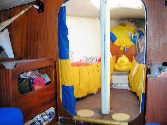 Aquí dos fotos del interior del velero rojo es un Pearson-Flyer-4. Mide 30 pies y está en Texas. Osea que un Terranova eh