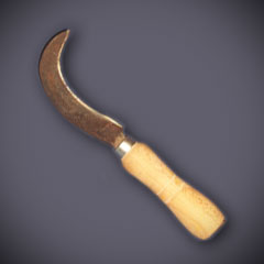 Por estas tierras, las gentes de las motoras (chipironeras o gasolinos) de pesca llevan unos cuchillos, en muchos casos artesanales, atados a mangos largos parecidos a ésto: