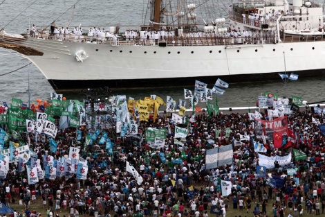 Cristina Kirchner convierte la llegada de la fragata 'Libertad' en un acto partidista