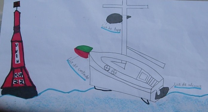 Y acabamos la mañana haciendo un poco de paipoesquí. Vaya, dos días perfectos. Y como esto es un curso de vela, nos trajeron la tarea del día: un esquema de las luces y balizas: