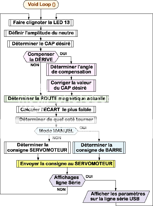 A continuacion decirle al Arduino que utilice la señales del LSM303 dentro de unos valores de sensibilidad (ganancia) establecidos por el usuario. Es decir: lo "tieso/borracho" que queremos que vaya el barco.
