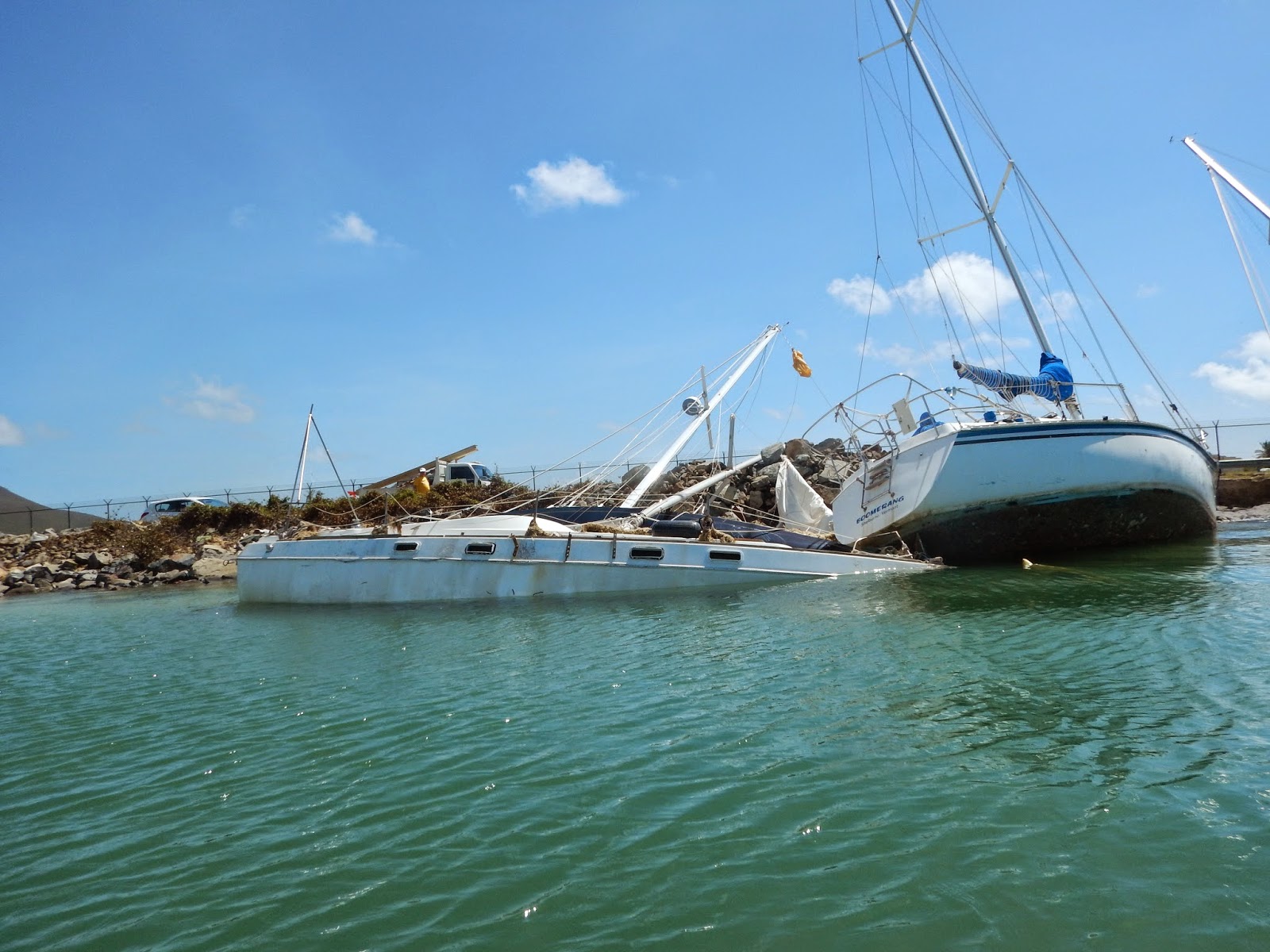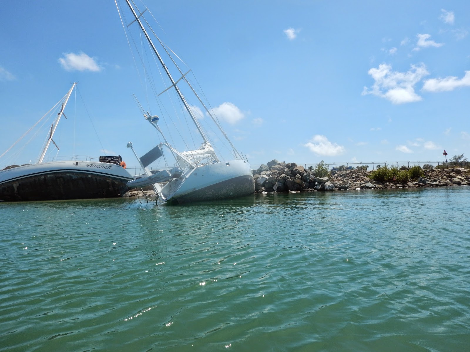 ![]() veleros encallados en Baiona en febrero del año pasado. |