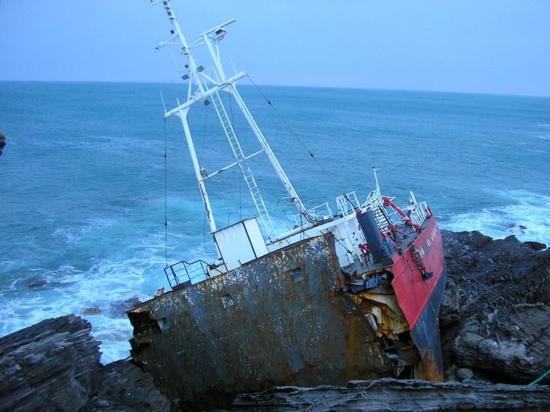 El Rio Rapel encallado en Valparaíso y desguazado in situ.