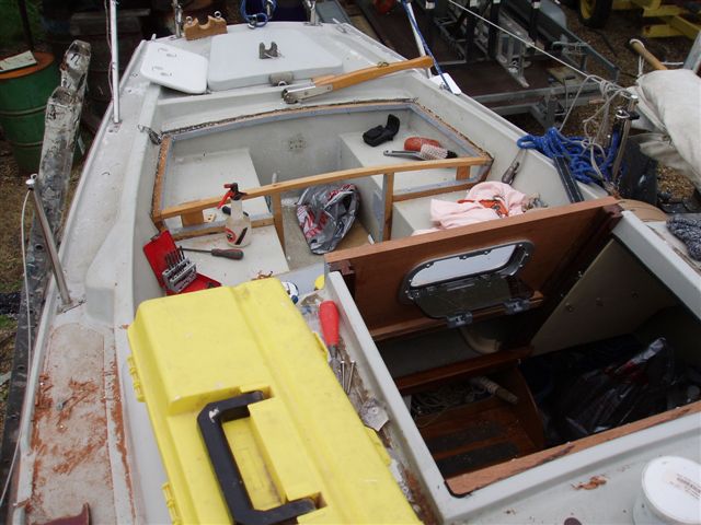 por eso lleva 230 kilos de plomo y acero a 1,65 metros de profundidad gracias a un apéndice que cala 1,9 metros, además la cabina se cierra con dos portillos estancos, y tiene una gran reserva de flotabilidad (si el botecito se rompe en cuatro trozos -Alá no lo quiera y Dios no lo permita- flotan los cuatro trozos)