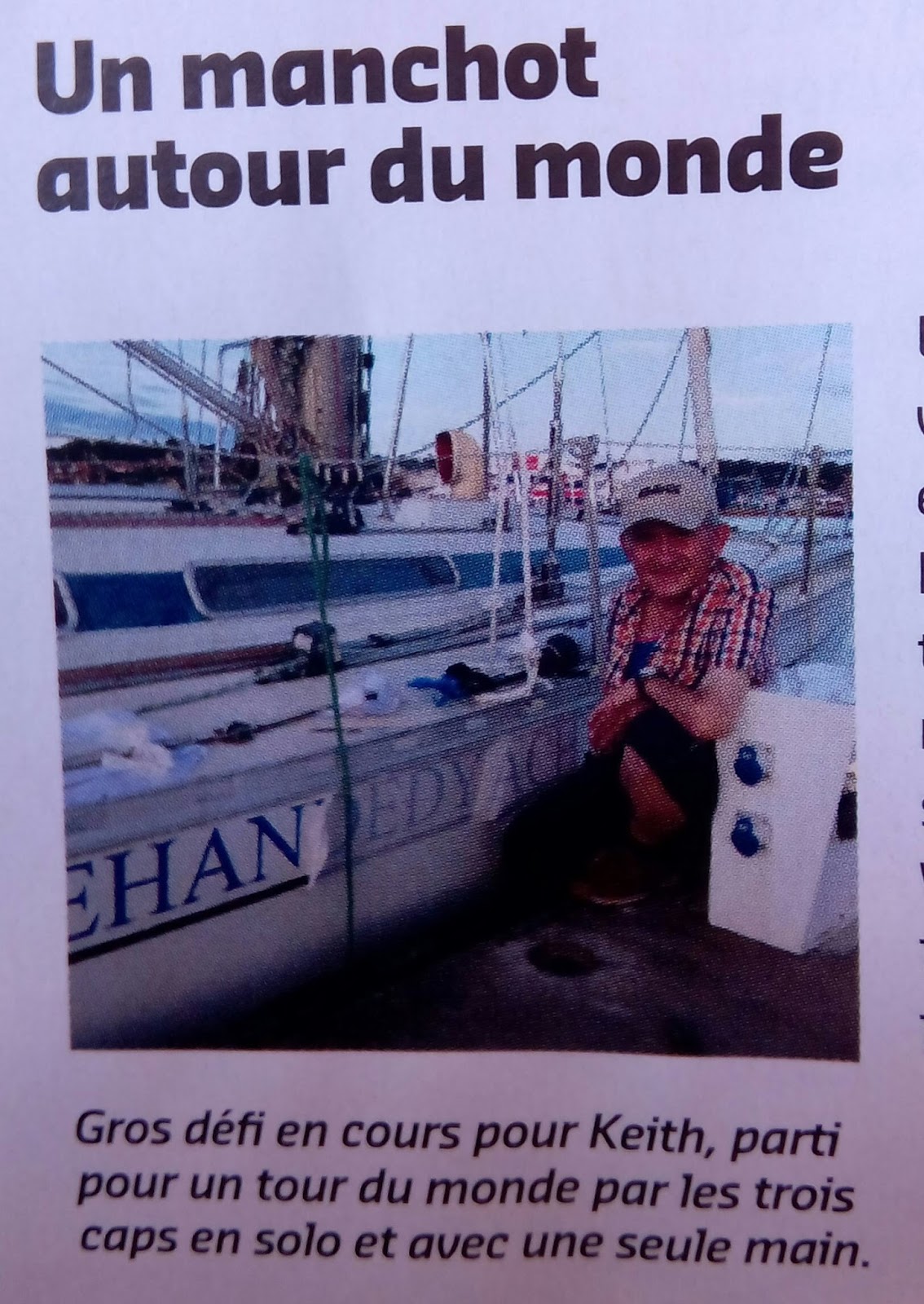 En la portada de su web http://singlehandedyachting.com/ , si pones el ratón encima de single-handed pone que Keith tiene sólo una mano útil, y después de World Challenge dice navegante discapacitado.