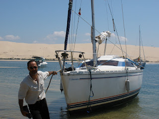 En la foto, mi sistema para volver a bordo desde la playa por la proa. Con ese francobordo que me llega a las axilas no hay quien suba sin ayuda.