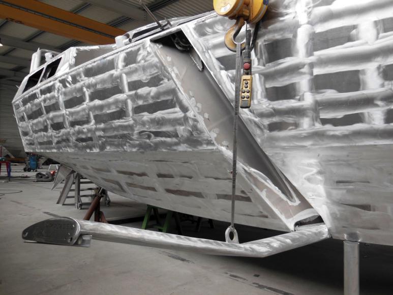 Pivotarían sobre un anclaje en el segundo pantoque y se fijarían a la regala cuando estén bajados (trabajando) y con una anilla al obenque al entrar a puerto. Las líneas de casco no se cambian en ningun momento y si se quiere se desmontan en un plis plas y se guardan en invierno o en navegación costera.
