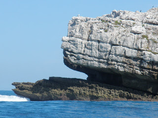 Ayer fuimos con los grumetillos a la Isla de Mouro. Hizo un día de auténtico verano y el sol, la mejor divinidad de los marinos, no nos dejó en toda la tarde. Además hizo un vientecito del Nordeste que nos permitió hacer toda la navegación a vela. Ibamos tres veleros y nos fondeams en línea a sotavento de la isla. Lo primero que nos llamó la atención fue el silencio y la ausencia de gaviotas. Normalmente venimos aquí en junio para estudiar su anidamiento, y entonces hay miles de ellas que te sobrevuelan con cierta agresividad cuando te acercas a sus nidos. Ayer casi no había y no nos hacían ni caso. Luego nos sorprendió una roca enorme, de más de una tonelada, que se ha desprendido sobre la escala de acceso al faro este invierno. La isla está llena de cuevas y grietas por donde se oye el mar aunque estés 50 metros sobre su superficie. Suponemos que en los temporales de este invierno ha habido bufones a través de las piedras y algunos de ellos la han desprendido. Estuvimos estudiando las egagrópilas. Son unas bolitas que regurgitan las gaviotas con aquello que su intestino no puede digerir. Si las abres ves su fuente de alimentación y sus errores. Por ejemplo, una de ellas se había comido plaquitas de plástico, trozos de globo y hasta trozos de cristal. Cuando se comen mucha de esta basura pueden morirse de una obstrucción intestinal. Normalmente lo que contiene una egagrópila son restos de conchas de crustáceos o espinas de pescados. De esas vimos muchas. Subimos a a parte más alta de la isla, donde está el faro, y nos sorprendió ver allí una tomarera de tomates Cherry. Suponemos que alguien dejó por allí restos de un bocadillo con tomate y las semillas fueron capaces de germinar. Al final estudiamos algunos opérculos, que son las tapas con las que se cierran las caracolas en su concha, como la puerta de su casa. Un grumetillo nos trajo dos que le han traido de Thailandia para compararlos con los de Cantabria. El de Thailandia es el que por detrás parece un ojo. Están constituidos de aragonita, igual que las estalactitas de las cuevas. En Asia suelen llamarlos “ojo de Shiva” porque según una leyenda hindú, Shiva es el dios del conocimiento, casado con la diosa Shakti. En uno de sus juegos ella se le acercó por detrás y le tapó los ojos. Entonces no sólo se oscureció la vista para Shiva sino que el mundo entero quedó en la más completa oscuridad. Ante tanta negrura el dios reaccionó y en medio de su entrecejo emergió un tercer ojo que volvió a iluminar el mundo y le devolvió la vista. Los joyeros dicen que el opérculo simboliza el tercer ojo de Shiva, que siempre vela a quien lo lleva consigo, y por si fuera poco también representa el ojo del conocimiento y de la sabiduría. La espiral en el reverso sería un símbolo del movimiento y del desarrollo, y también de la protección contra las fuerzas negativas. El ojo de Shiva tendría un efecto positivo para el bienestar en todos los aspectos. La aragonita activaría la sensibilidad, tendría un efecto tranquilizante y equilibrante y disminuiría la fatiga y el nerviosismo. Debido a su alto contenido en calcio, le atribuyen un efecto muy positivo en los músculos tensos, las articulaciones, los tejidos y la piel. Naturalmente todo eso es falsedad y no está comprobado científicamente. ¡Lo que se inventa para vender un colgante o unos pendientes!. Al final se bañaron todos y como siempre se nos hizo tarde y tuvimos que volver a motor.