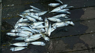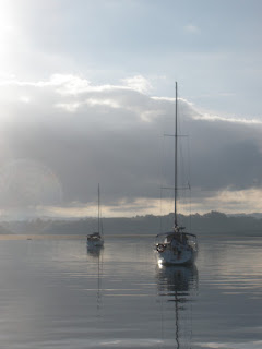 Ayer hicimos otra salida con los grumetillos. Aunque por la mañana hizo un sol extraordinario, como los que pintan los niños, al medidodía empezó a soplar el viento gallego (el del Oeste, que suele traer lluvia) y el cielo se llenó de nubes de las que traen agua hasta el punto de que ya veíamos peligrar nuestra navegación. Salimos con todo gris y a ratos llovizna pero finalmente no pasó de eso. Ya os he comentado que si en el Norte suspendiéramos los planes al aire libre por el temor de que llueva nunca haríamos nada. Y la decisión de mantener la navegación tuvo su premio, porque hizo una tarde nublada, pero extraordinaria. Salimos 3 veleros y una motora. Los de la motora fueron a pescar, y gracias a la experiencia del patron dieron con un banco de chicharros y pescaron nada menos que 54. Algunas veces subieron hasta 5 ó 6 peces en la misma línea. Los de los veleros estuvimos dando bordos por dentro de la bahía para no alejarnos mucho si el tiempo empeoraba. A las 18 h. quedamos todos juntos a merendar y les enseñamos a fondear. Aunque estaba nublado todos se bañaron. Y finalmente, como hoy no era día de playa, la Cruz Roja pudo venir a compartir un rato de la tarde con nosotros y les dio unas vueltas en la zodiac. El lunes saldremos a una navegación nocturna para ver los fuegos artificiales. Van cogiendo confianza y este año se han apuntado todos a dormir en los barcos. ¡Menudo lío!. A ver si sale una buena noche.