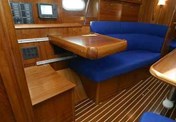![]() Los sun odissey 35 llevaban una solucion ingeniosa que es una mesa de cartas que corre sobre unos railes laterales,de esta manera no tienes porque sacrificar el banco ni el espacio del navegante. |