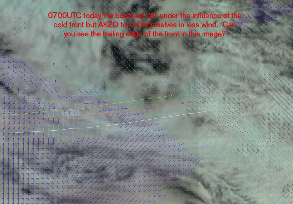 Sin conocer las polares es difícil predecir quién estará favorecido en este tramo final si Donfeng o Mapfre. Entrará este último antes, en el nuevo viento un poco más subido parece. animo Mapfre