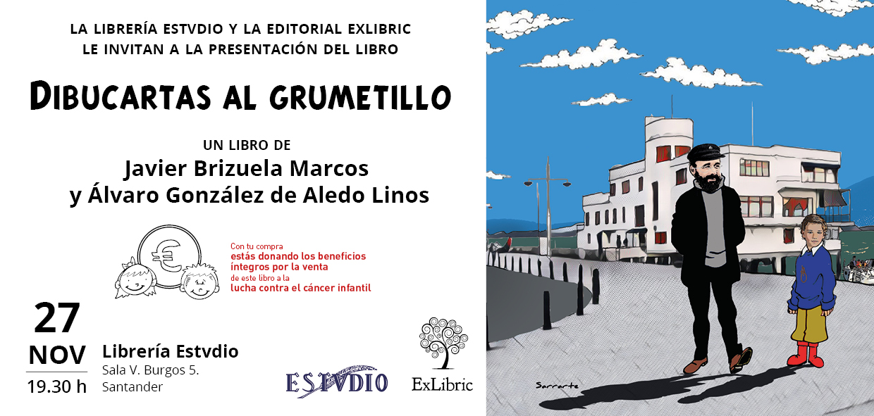 Desde hace 15 años un grupo de sanitarios y navegantes organizamos en Santander la actividad de vela solidaria “Carpe Diem” en la que enseñamos a disfrutar del mar y del deporte de la vela a los niños de Oncología de Valdecilla, a los que llamamos “los grumetillos”. Durante los ingresos de uno de ellos, Javier, que fue diagnosticado de leucemia a los 8 años, le escribía “dibucartas” en las que las letras empiezan a girarse o cambiar de tamaño para ir construyendo un dibujo. Se nos ocurrió la idea de agruparlas en dos ejércitos. Uno sería el de los buenos, que intentaría ayudar a Javier a superar el duro trance en que se encontraba. Les llamamos “Los Dibugruminados” porque estaría constituido por héroes buenos de los dibujos animados y contaría con la ayuda de todos los grumetillos de vela. El otro sería el de los malos. Les llamamos “Los Desnarizados” porque estarían dibujados sin nariz, sustituida por un signo de interrogación. Se debe a que en un ingreso Javier tuvo una reacción alérgica con asma, que le hizo vivir la angustia de no poder respirar. Quisimos que todos los malos pasasen por lo mismo. En el libro se recoge la historia de esta lucha desigual, inventada y escrita por Javier durante sus ingresos y su estancia en la burbuja, y se reproducen las dibucartas. No es un libro sólo para niños, que son, obviamente, su principal destinatario. También está dirigido a sus padres, porque tendrán que ayudarles a descifrar las dibucartas, y porque tienen que comprender que hasta en los momentos más difíciles es posible tomar distancia y desdramatizar las situaciones. En el caso del cáncer pediátrico, pensando que a pesar de la crueldad del diagnóstico y de los años de duros tratamientos, la mayoría se curan y tarde o temprano llegará el momento en que todo esto será sólo un mal recuerdo. Y a esa esperanza optimista hay que agarrarse para que no sucumba la pareja y toda la familia en el proceso. Y finalmente también se dirige a los sanitarios, para que comprendan que nuestra labor terapéutica debe ir más allá de aplicar los mejores tratamientos y debe incluir todos los aspectos de la vida del niño, desde su estancia en el hospital, su escolarización y su tiempo libre. Los beneficios íntegros del libro, de los autores y de la editorial ExLibric, se destinarán a la lucha contra el cáncer pediátrico. La presentación será en la librería Estvdio de la Calle Burgos, en Santander, el martes 27 de noviembre a las 19:30 h. La siguiente imagen puede reenviarse por wasap, por si nos hacéis el favor de ayudarnos a difundir la convocatoria. Gracias.