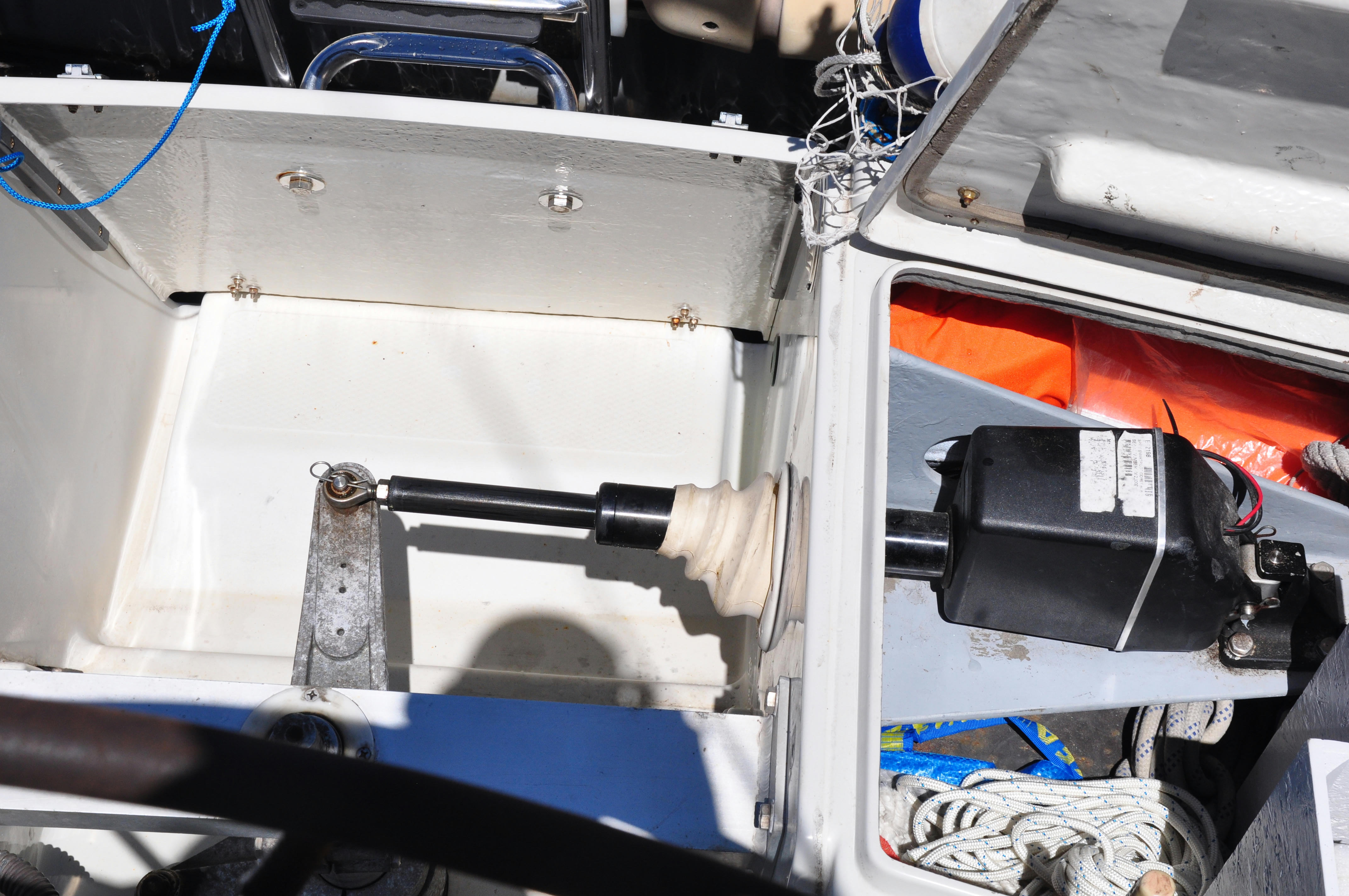 la idea sería cambiar el lado de la biela de la bitacora para que fuera por babor, para ello habrái que desmontarla. De esta manera se podría abrir por el cofre y haciendo un agujero meter el actuador o brazo del piloto. Escucho opiniones. Espero que se entienda en el dibujo. ![]() timonera.jpg |