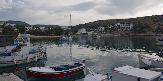 La noche es tranquila pero no se ven estrellas. Desde que salimos este año hemos encontrado pocos, casi ninguno de esos días luminosos de Grecia.