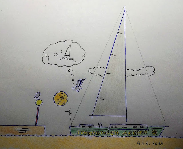 Dibufirma del Kelly Peterson 44 "DIOSA MAAT". Es el velero de Ecologistas en Acción, que este invierno lo está pasando en Cantabria: