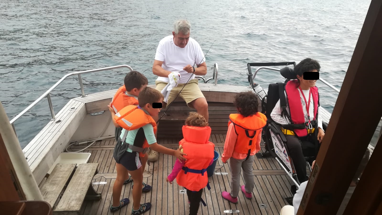 Ayer fue nuestra décima navegación este verano con los grumetillos y la dedicamos a enseñarles a pescar. Este día les embarcamos en una motora con un pescador que sepa pescar, no como los de los veleros que hacemos como que pescamos, para que se diviertan y aprendan algo de verdad, estando garantizadas las capturas. Embarcaron en el "Cole", que ayer sí que parecía de verdad un cole, aunque para aprender otras cosas.